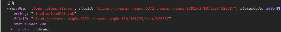 然后我们现在再点击一下按钮,看一下wx.cloud.uploadFile的回调会给我们返回一个什么样的值。
